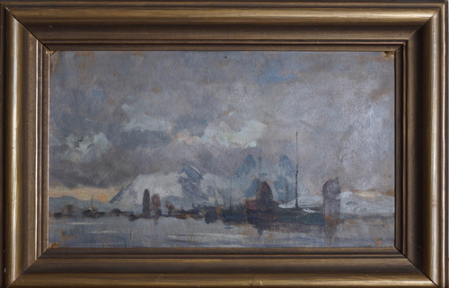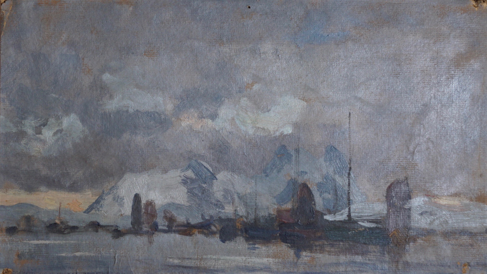 Inscribed on the reverse of the panel: 'Sketch from Lofoten. Painted by Gunnar Berg