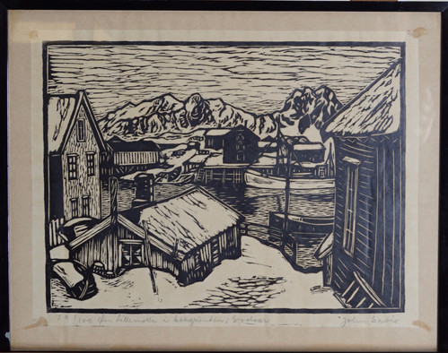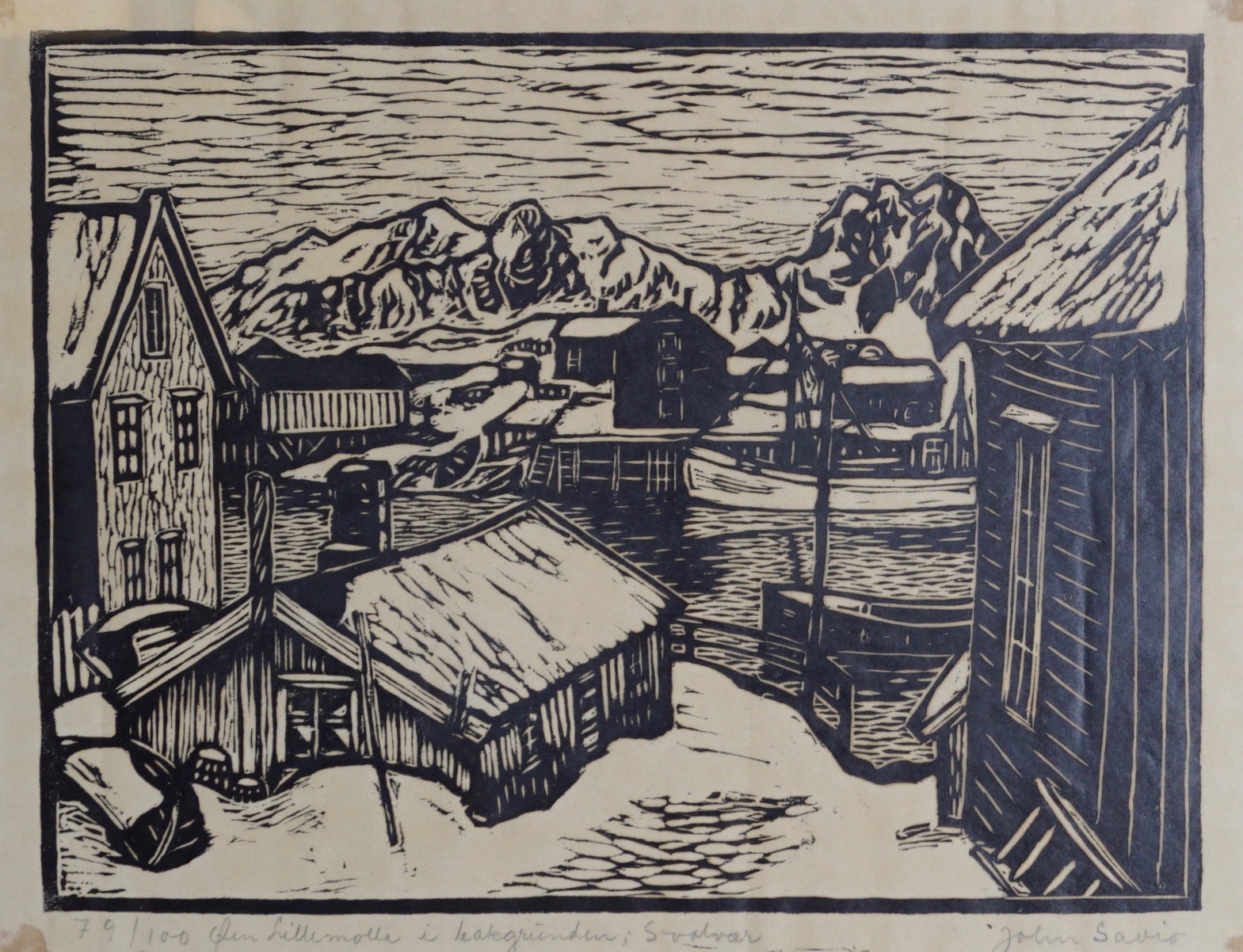 Numbered and inscribed lower left: 79/100 Øen Lillemolla i bakgrunden; Svolvær