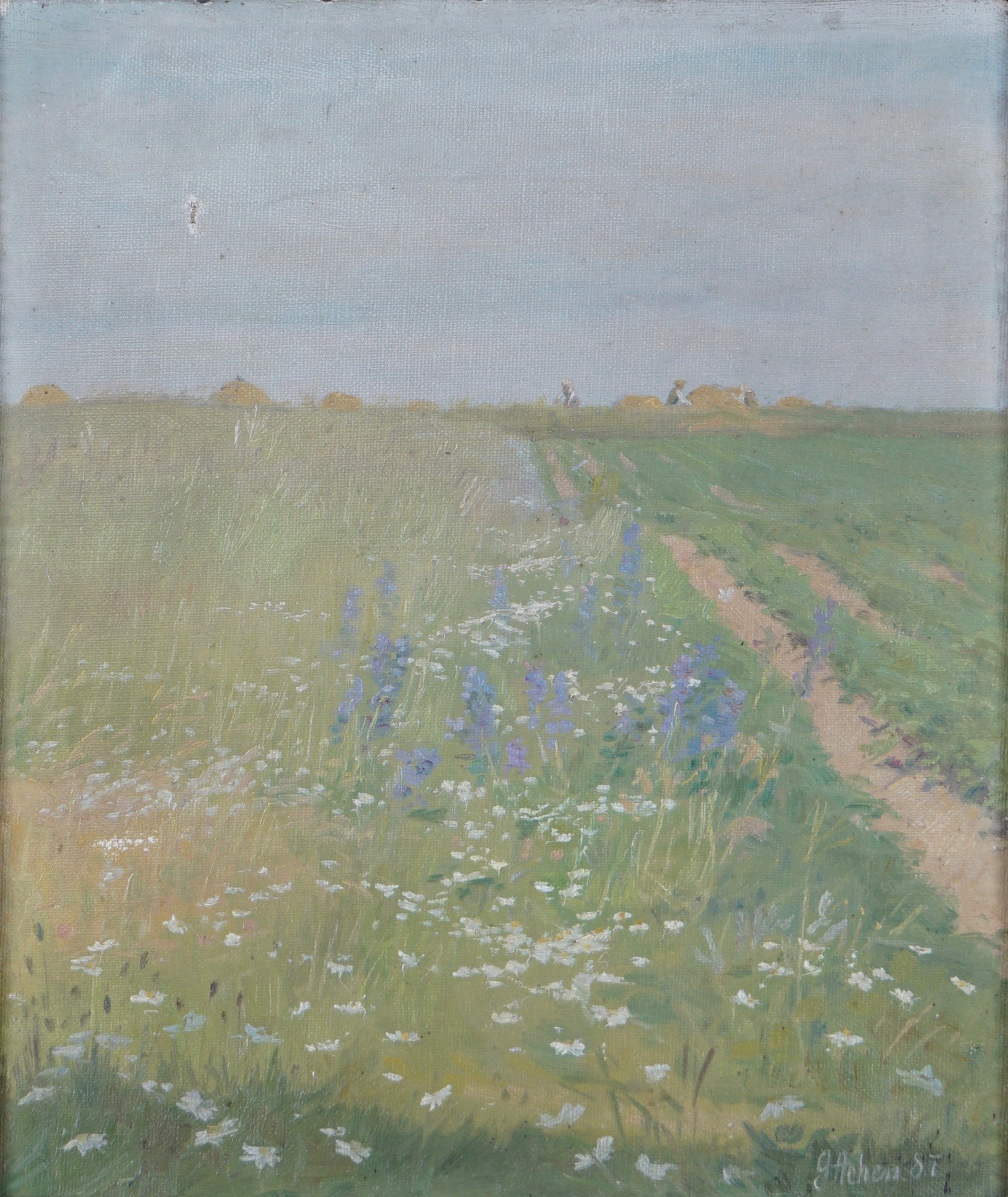 | Achen, Georg Blomstereng med høying i bakgrunnen 1887 | 1. juni 2021 | NOK 8 000–10 000 | NOK 6 000 |