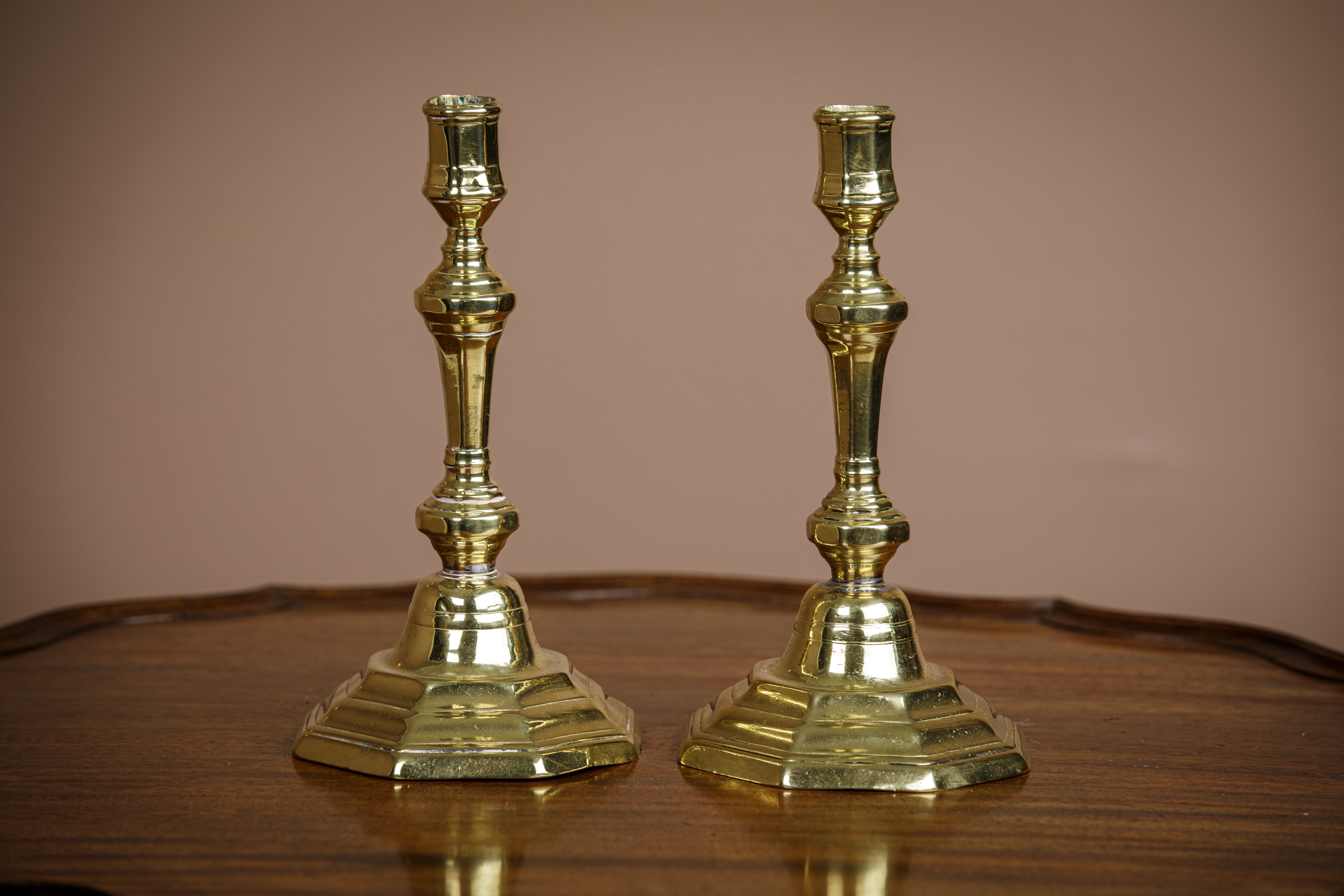 Et par 1700-talls barokk-lysestasker i messing