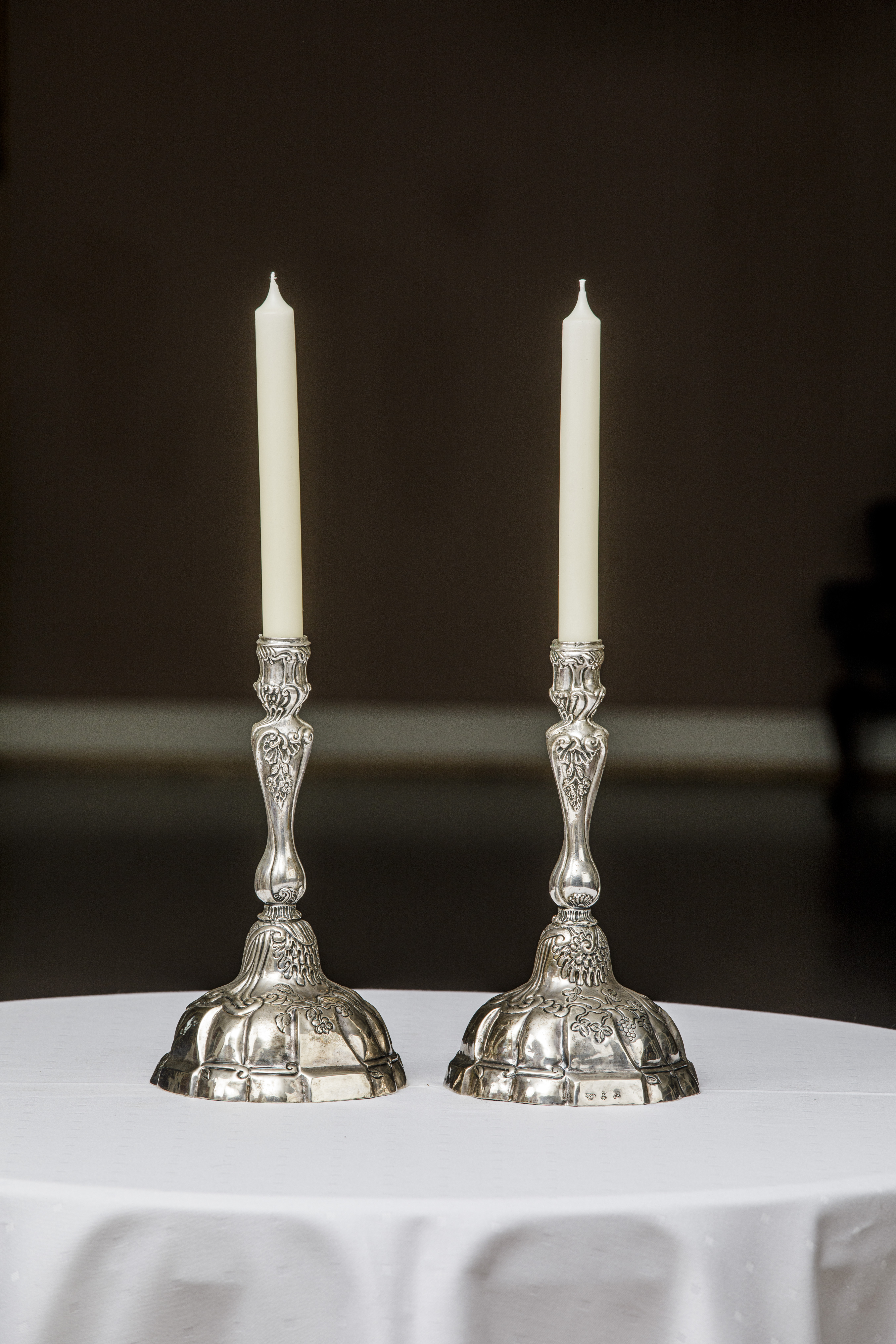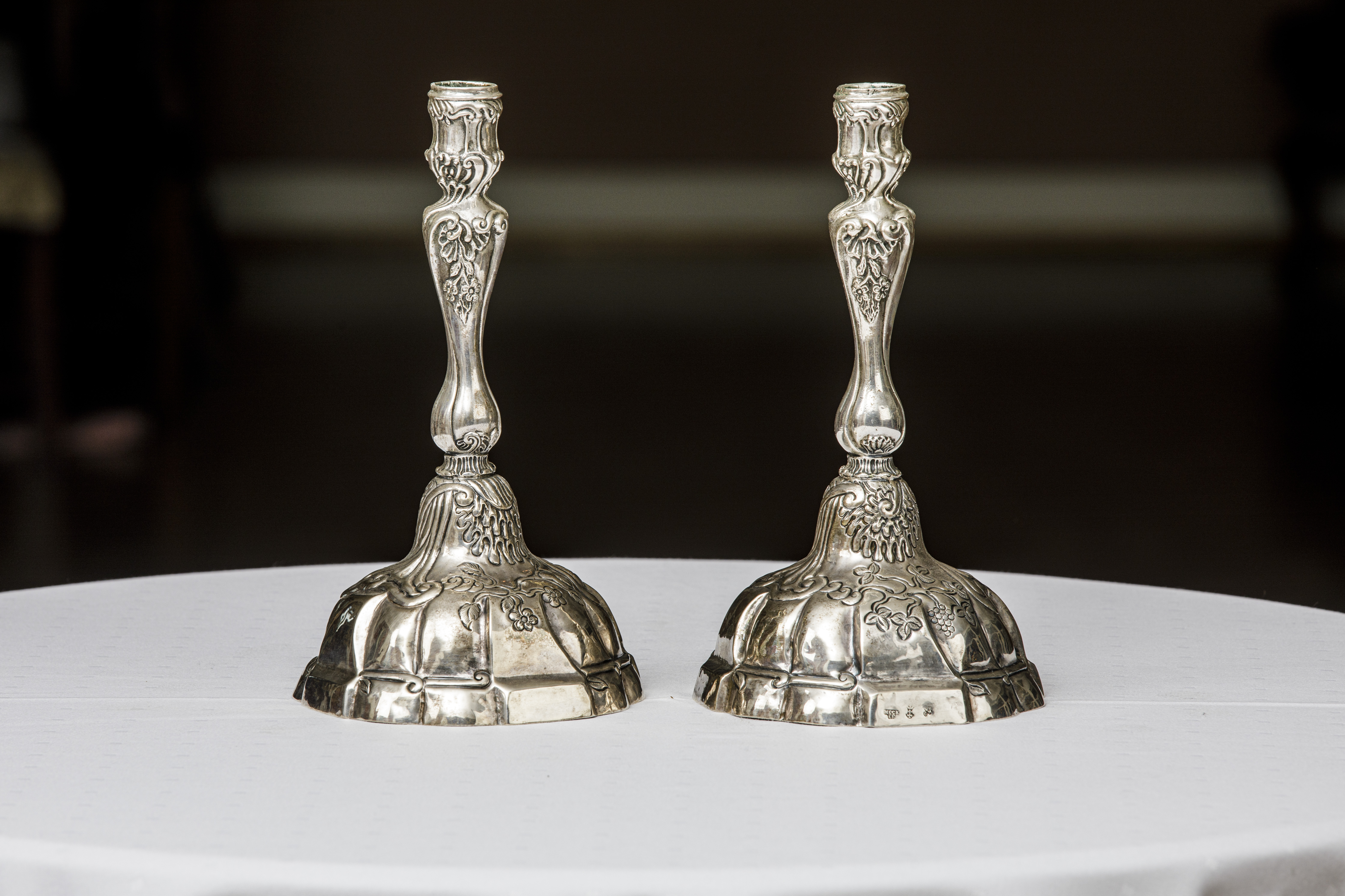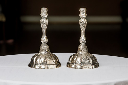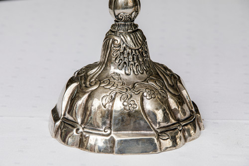 Baluster fot, spiral og blomster-dekor i base, vinløv og rocailler.
