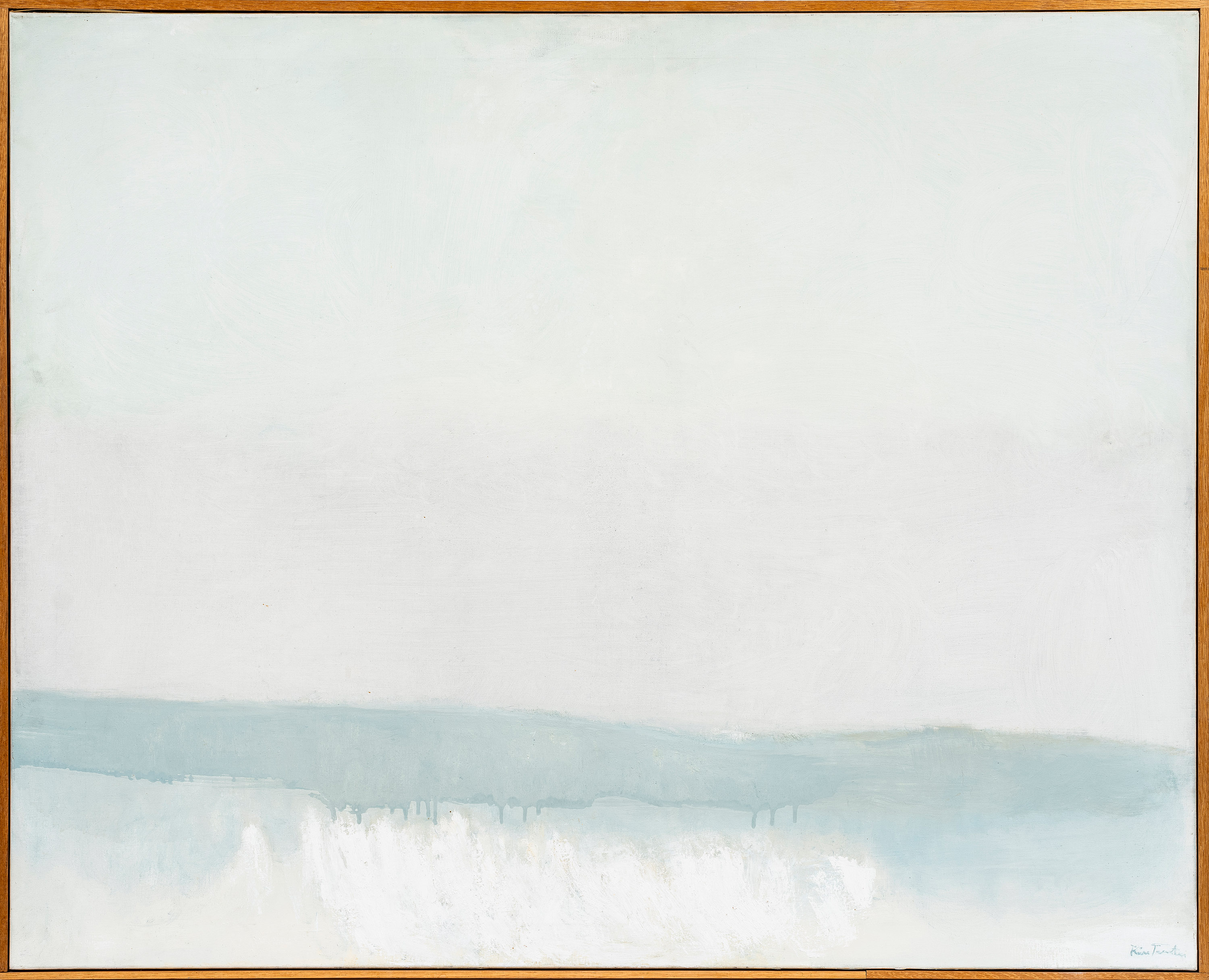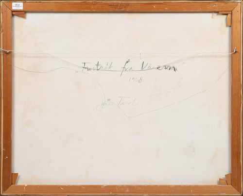 Signert, datert og påtegnet med tittel på baksiden, på lerretet: "Froströk fra Väneren" 1968