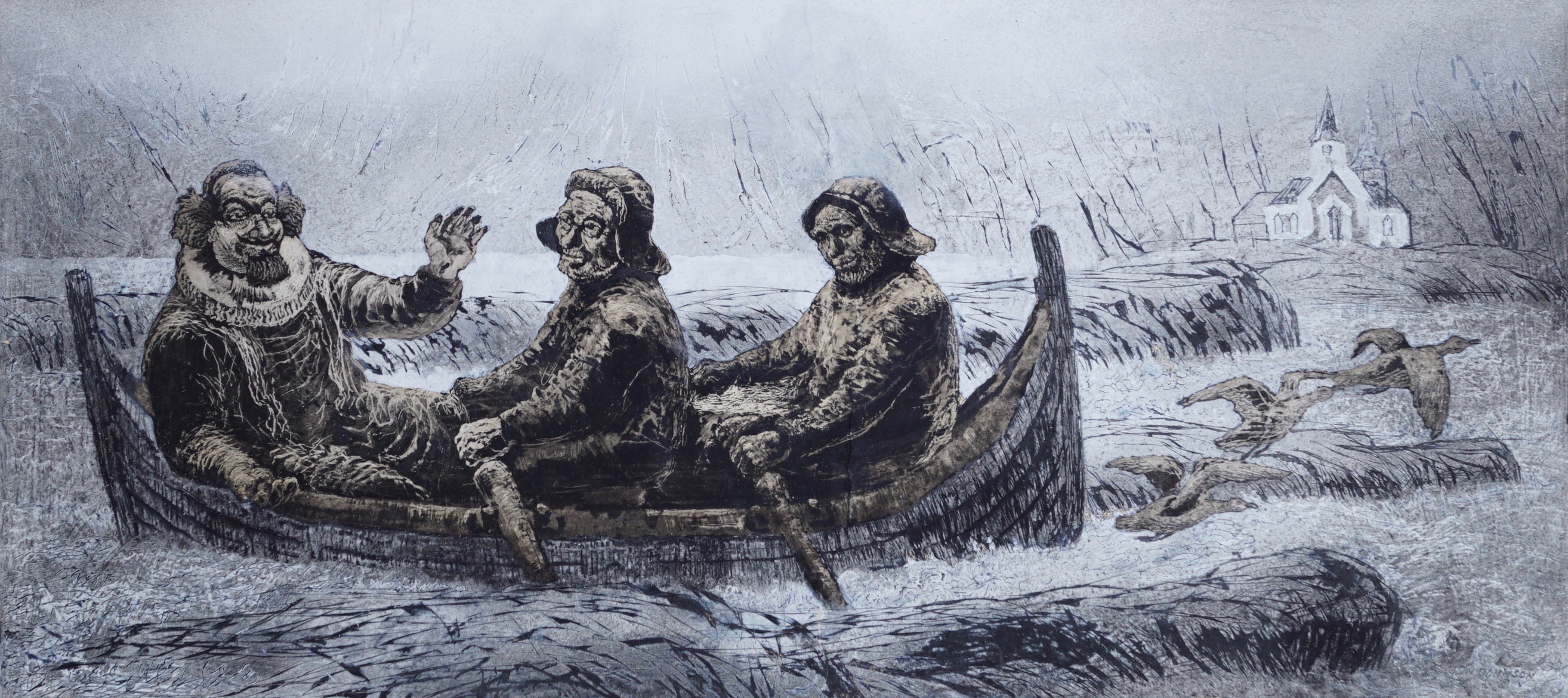 Illustrasjon til «Tanker om prestetjenesten i Nordland» av Petter Dass i Norges Røde Kors sitt julehefte Julefest 1958.