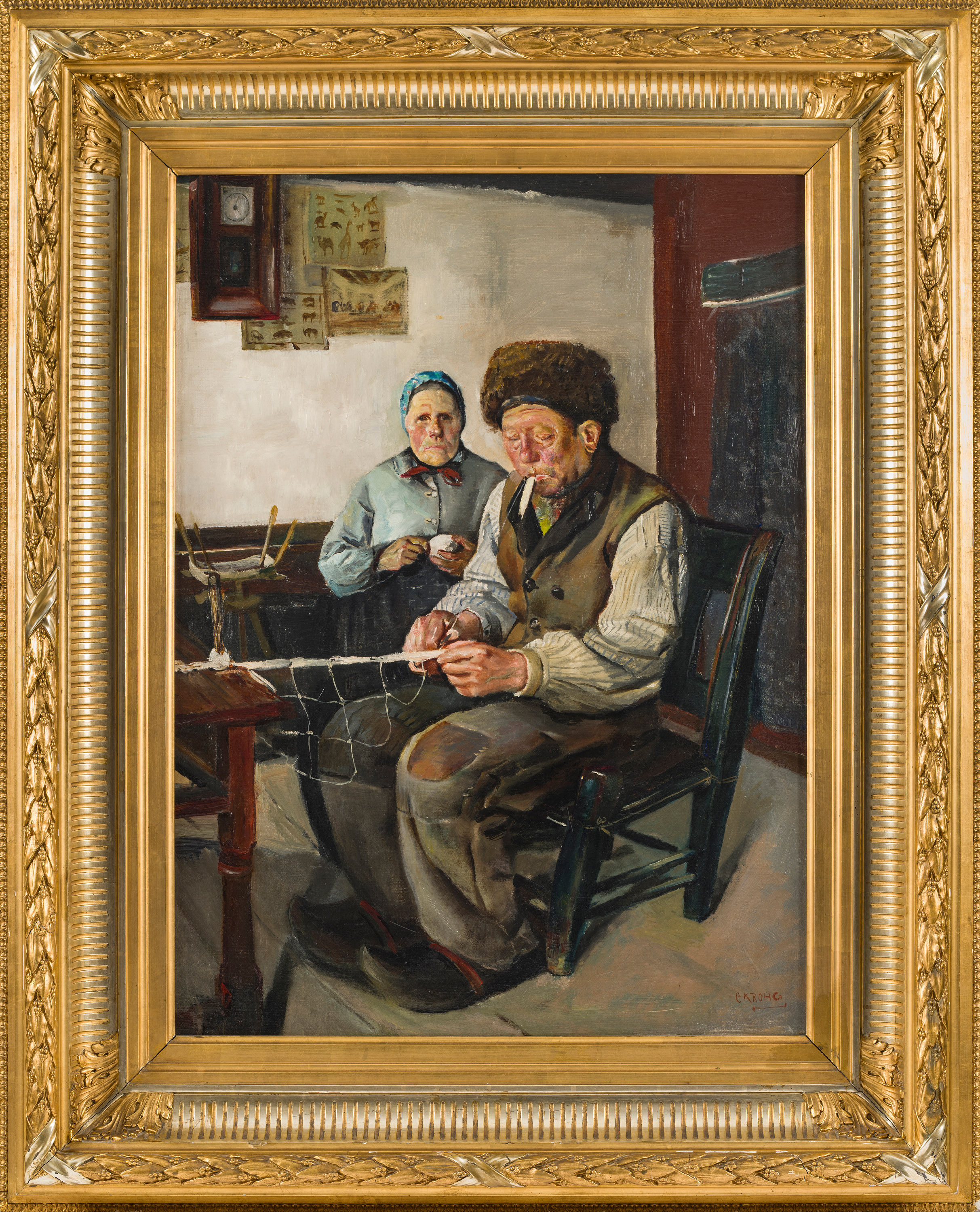 Mens Krohgs Skagen-bilder oftest er relativt enkle og storformede i sin oppbygning, gjerne med figurer sett mot en mer eller mindre udifferensiert bakgrunn, har han her med inntrengende detaljrealisme og interesse for det etnologiske gitt en nøyaktig redegjørelse for modellenes fattigslige klesdrakt og for de mange gjenstander i rommet.