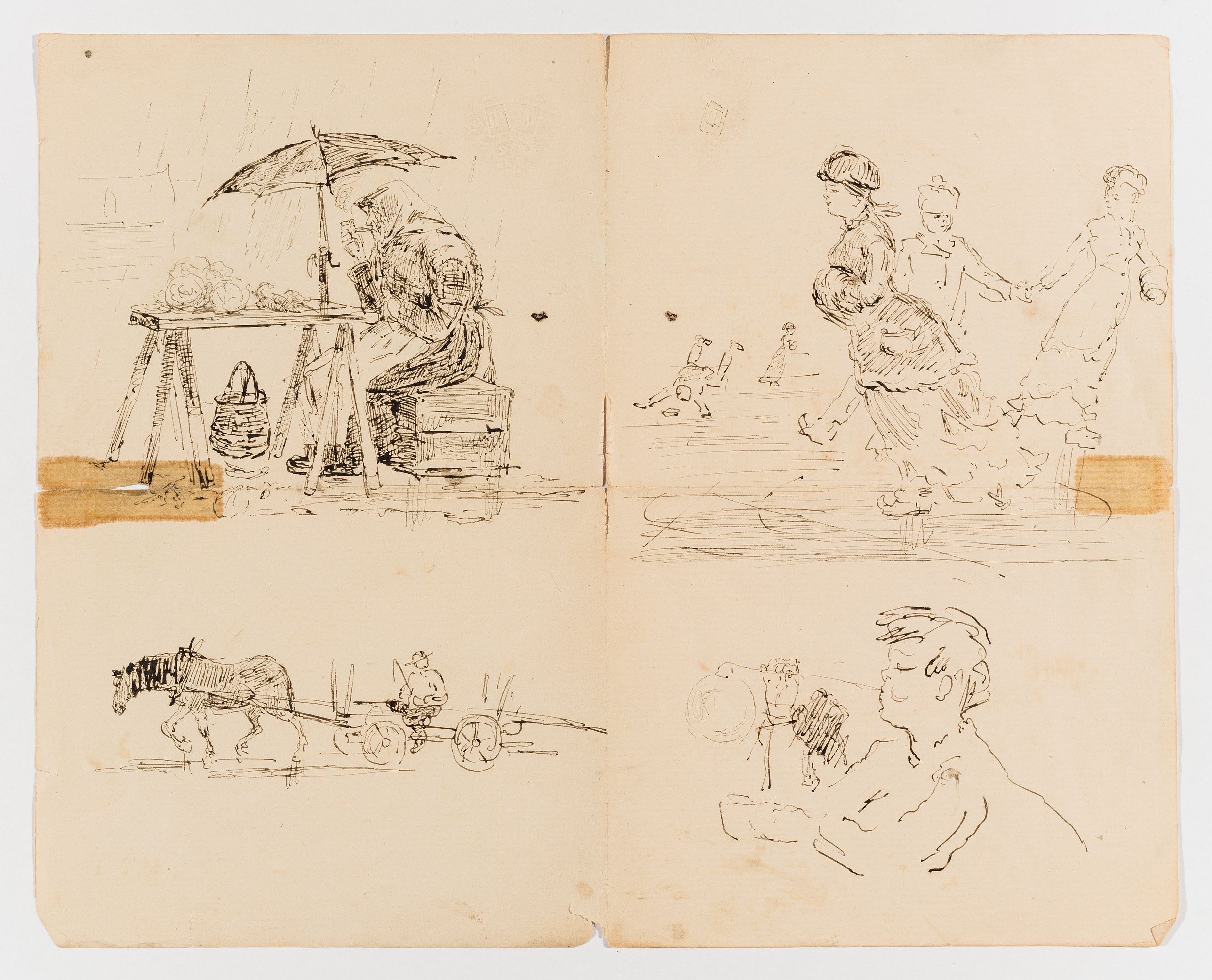 Pennetegning på brevpapir med Edvard Munchs monogram