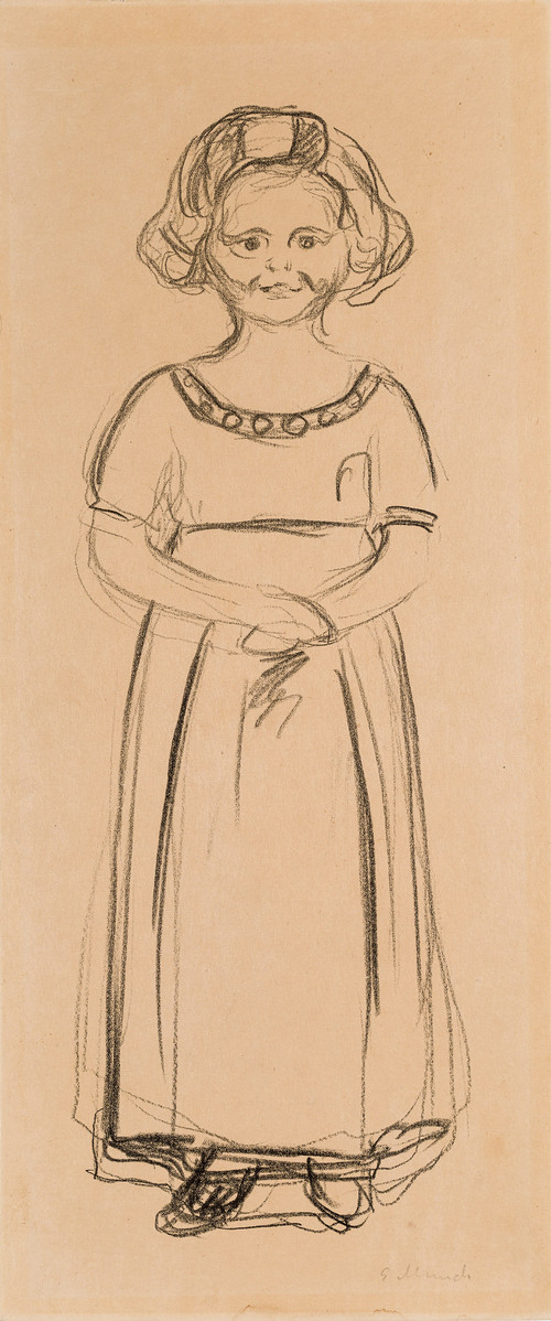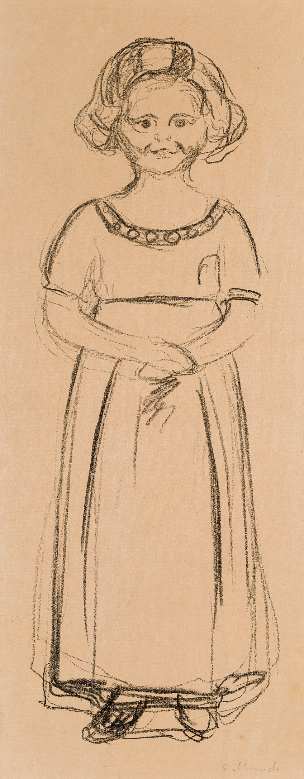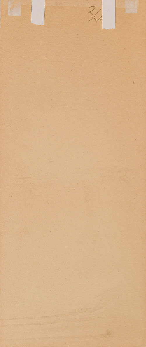 Litografi trykket i svart på tykt beige papir oppklebet på papp