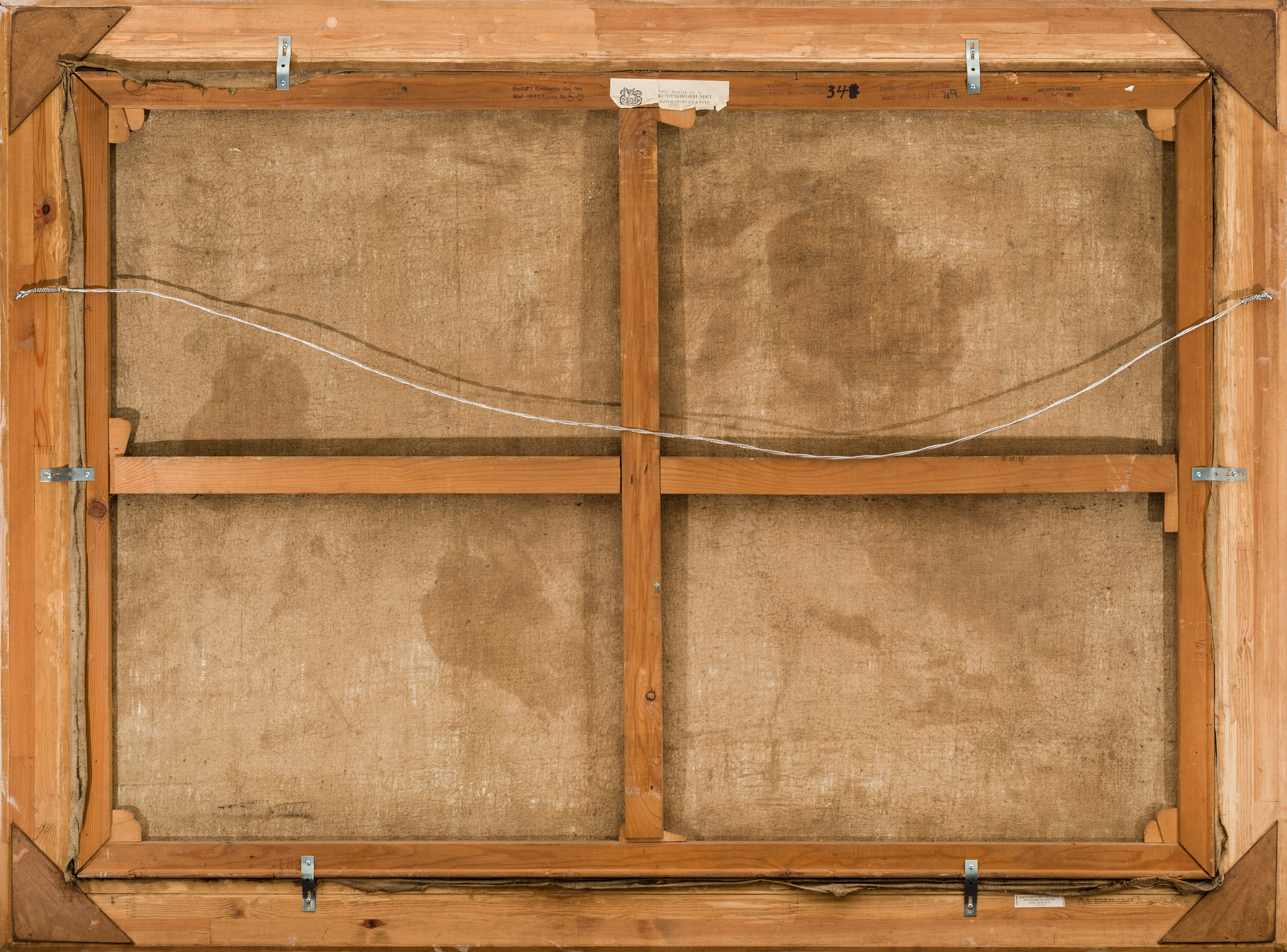 Påtegnet med noe utydelig tittel på baksiden på lapp, på blindrammen.